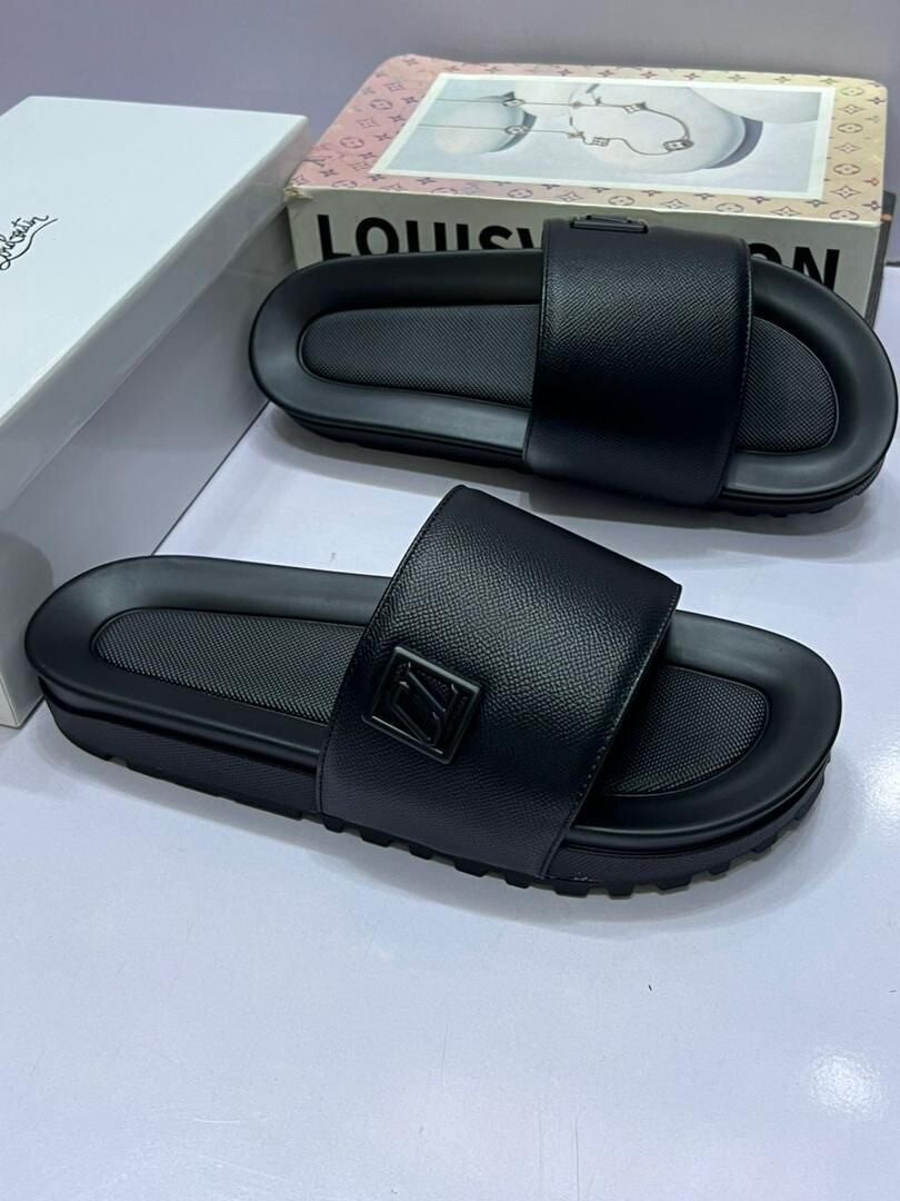 "High-End Men's Summer Slippers: Thick-Soled Anti-Slip Rubber Slip-On Sandals with FeelLetter Print for Comfortable Outdoor Wear